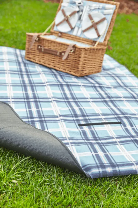 OUTDOOR BREAK piknik takaró, pléd: lágy tapintású, az alján lévő bevonat megakadályozza a nedvesség átjutását, összehajtva, tépőzárral
