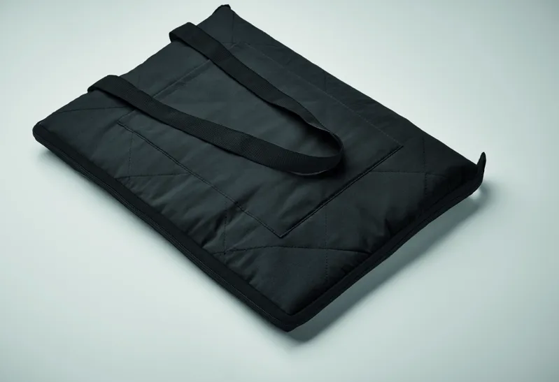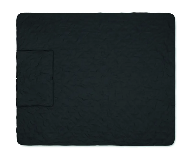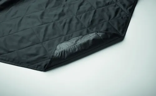 Összehajtható steppelt pikniktakaró műanyaggal bevont PEVA-val a hátoldalon. Összehajtható egy kényelmes, állítható vállpántos hordtáskává, nagyméretű zsebbel az elülső oldalon.