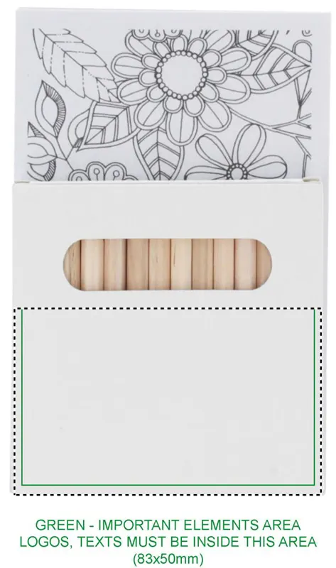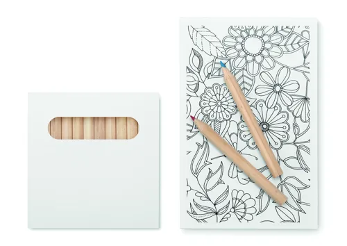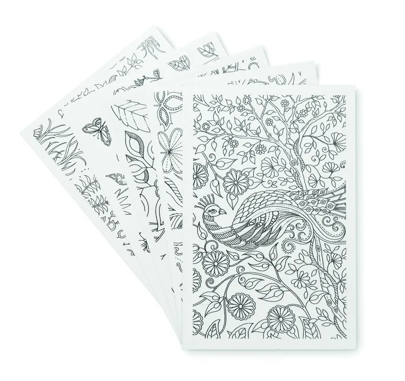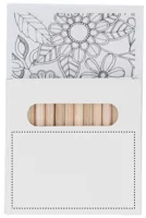 Felnőtt színező szett 10 kártyával és 12 színező ceruzával, újrahasznosított papír dobozban.