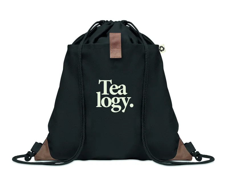 Újrahasznosított pamutból készült húzózsinóros táska, 50% pamut és 50% újrahasznosított pamut zsinórral. 220 g vastag anyag.