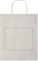 Közepes papír ajándéktasak. Egy papírtáska remek módja az ajándék tetszetős csomagolásának és átadásának. Akár kisebb hordtáskaként is használható. 90 g. vastag papírból. FSC®-certified | FSC MIX, P5.3, FSC-C213206