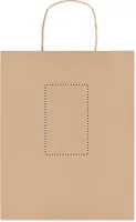 Közepes papír ajándéktasak. Egy papírtáska remek módja az ajándék tetszetős csomagolásának és átadásának. Akár kisebb hordtáskaként is használható. 90 g. vastag papírból. FSC®-certified | FSC MIX, P5.3, FSC-C213206