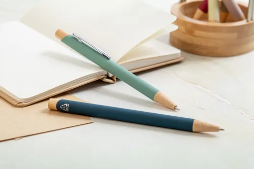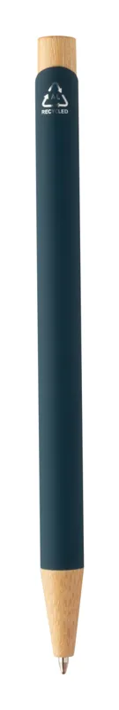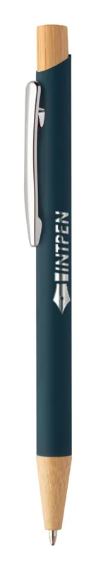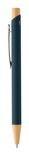 Újrahasznosított alumínium golyóstoll bambusz részekkel, gumírozott felülettel és króm klipsszel. Speciális bevonattal rendelkezik, amely különlegesen fényessé teszi a gravírozott emblémát. Kék tollbetéttel.