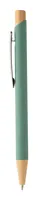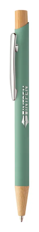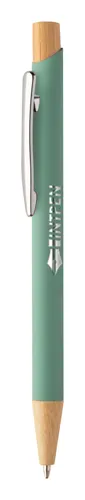 Újrahasznosított alumínium golyóstoll bambusz részekkel, gumírozott felülettel és króm klipsszel. Speciális bevonattal rendelkezik, amely különlegesen fényessé teszi a gravírozott emblémát. Kék tollbetéttel.