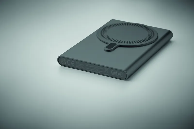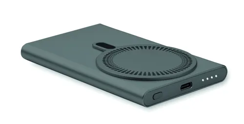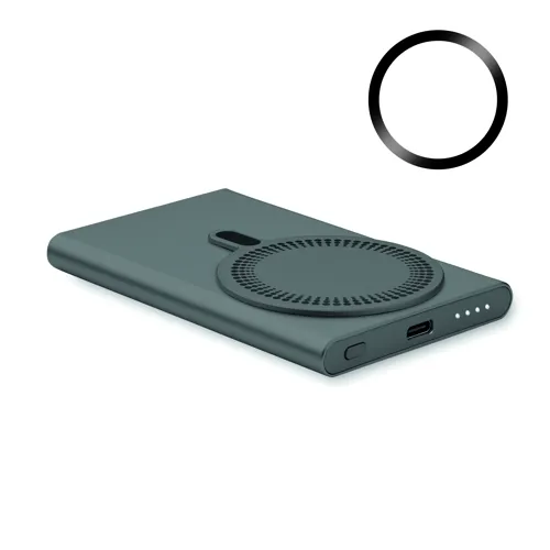 Mágneses vezeték nélküli töltő (15W) és powerbank külső akkumulátor (5000 mAh) újrahasznosított alumíniumból. DC 9V/1,66A teljesítmény. Támogatja a vezetékes gyorstöltési technológiát (20W). Be-/kimenet: C-típusú. Power Delivery (PD) támogatás a legújabb MacPro® laptopok töltéséhez. További mágneses fémgyűrűt tartalmaz, amely támogatja más, nem mágneses vezeték nélkül tölthető telefonok töltését.