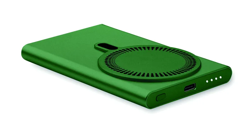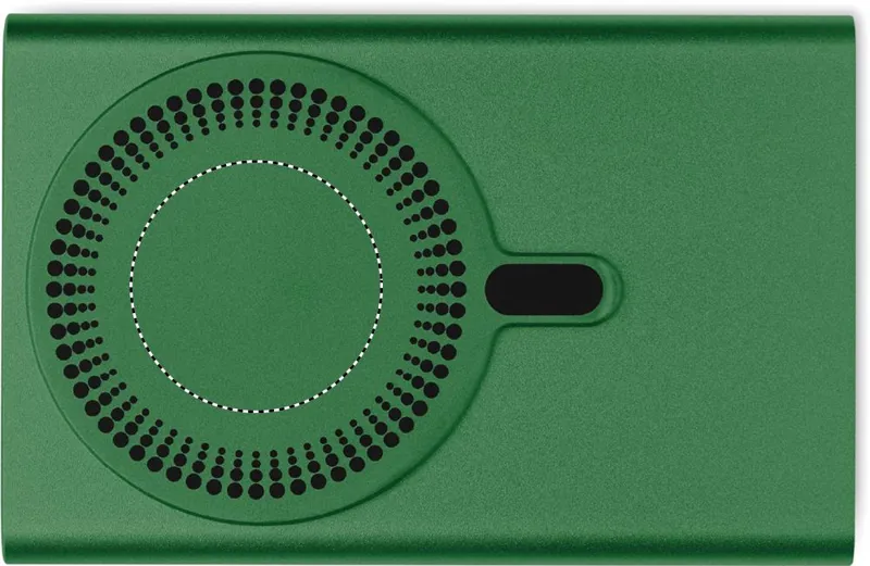 Mágneses vezeték nélküli töltő (15W) és powerbank külső akkumulátor (5000 mAh) újrahasznosított alumíniumból. DC 9V/1,66A teljesítmény. Támogatja a vezetékes gyorstöltési technológiát (20W). Be-/kimenet: C-típusú. Power Delivery (PD) támogatás a legújabb MacPro® laptopok töltéséhez. További mágneses fémgyűrűt tartalmaz, amely támogatja más, nem mágneses vezeték nélkül tölthető telefonok töltését.