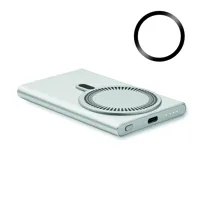 Mágneses vezeték nélküli töltő (15W) és powerbank külső akkumulátor (5000 mAh) újrahasznosított alumíniumból. DC 9V/1,66A teljesítmény. Támogatja a vezetékes gyorstöltési technológiát (20W). Be-/kimenet: C-típusú. Power Delivery (PD) támogatás a legújabb MacPro® laptopok töltéséhez. További mágneses fémgyűrűt tartalmaz, amely támogatja más, nem mágneses vezeték nélkül tölthető telefonok töltését.