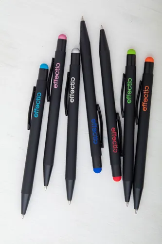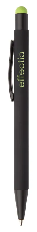 Alumínium golyóstoll érintőképernyős funkcióval, gumírozott felülettel. Különleges bevonattal, melynek gravírozása után az embléma az érintőképernyős véggel harmonizáló színben jelenik meg. Kék tollbetéttel szállítjuk.