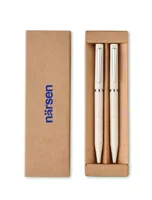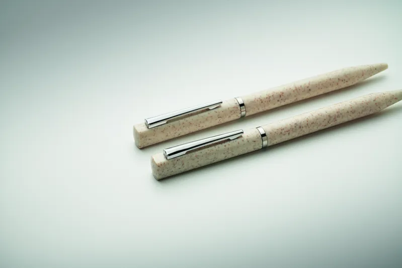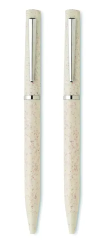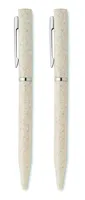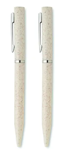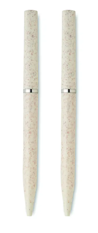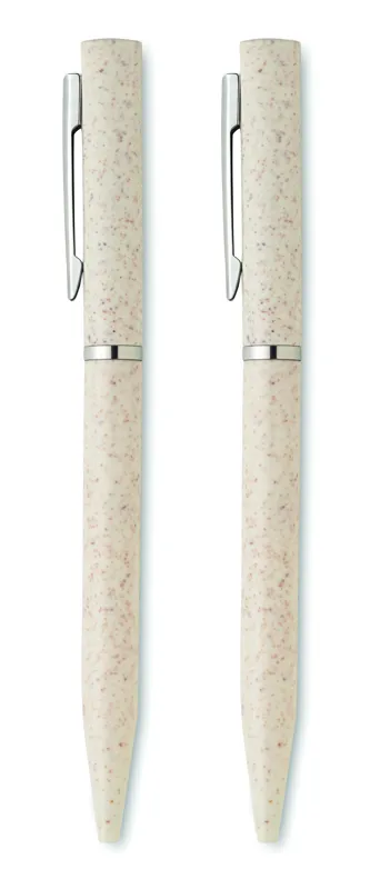 Búzaszalma/ABS tollkészlet csavarzáras, kéken író golyóstollal és csavarzáras, grafit, tintamentes golyóstollal. Újrahasznosított papírdobozban. FSC®-certified | FSC MIX, P5.1, FSC-C213206