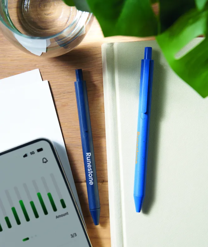 PECAS Szalma / ABS nyomógombos toll közép kék