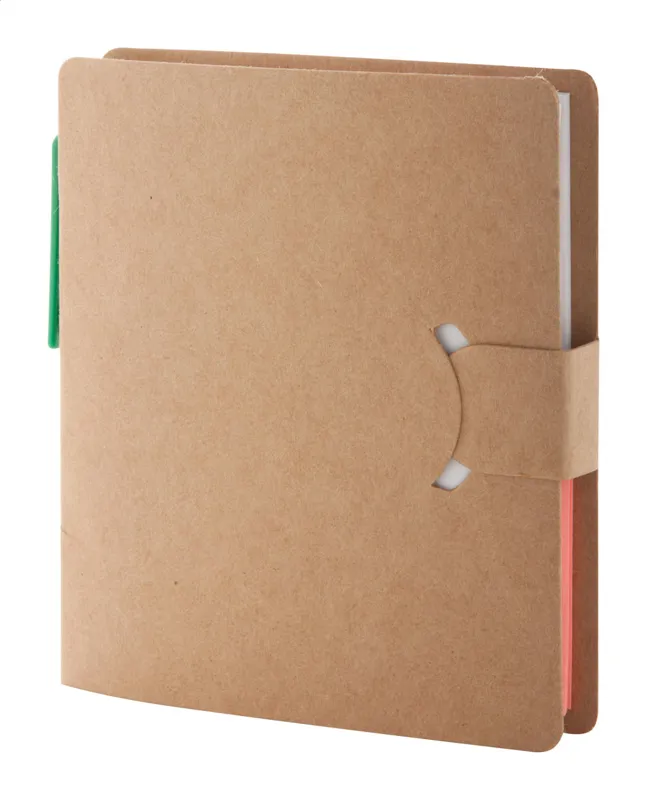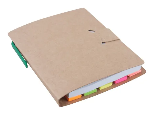 225 db különböző méretű öntapadós jegyzetlap és egy golyóstoll karton tokban.