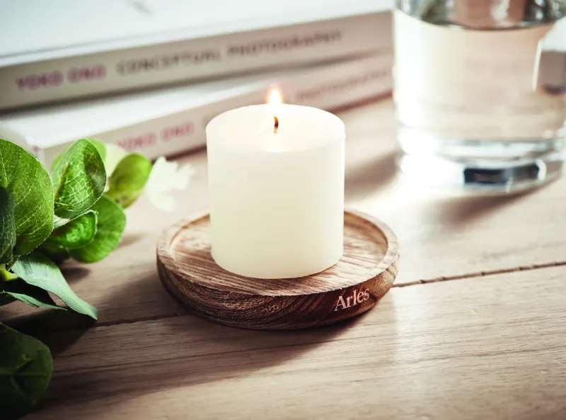 PENTAS Gyertya kerek fa talpon Barna