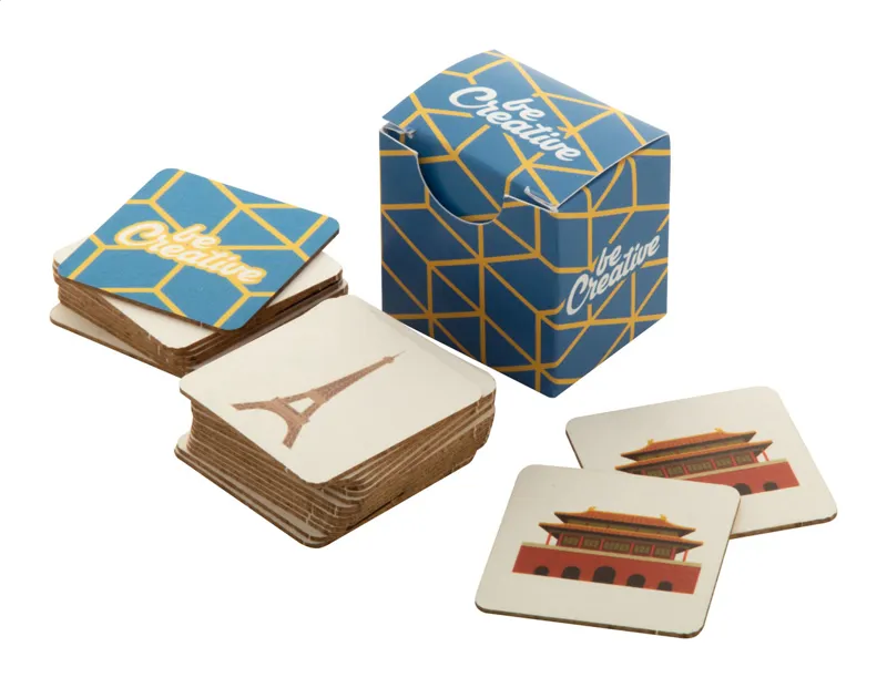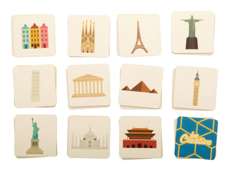Kartonpapírból készült memóriajáték tematikus grafikával, egyedi papírdobozban. 24 lapka (40×40 mm). Az ár tartalmazza a full colour nyomtatás költségét az összes lapka hátoldalán és a dobozon. Minimális rendelési mennyiség: 100 db.