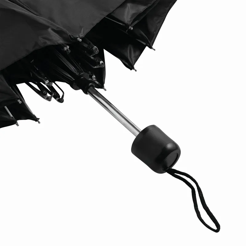PICOBELLO összecsukható esernyő: 3 részes fém nyéllel, fém/üvegszálas bordázattal, fém végekkel, fekete műanyag markolattal, poliészter ernyővel, tépőzáras összefogóval