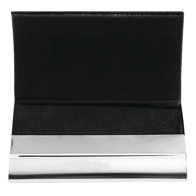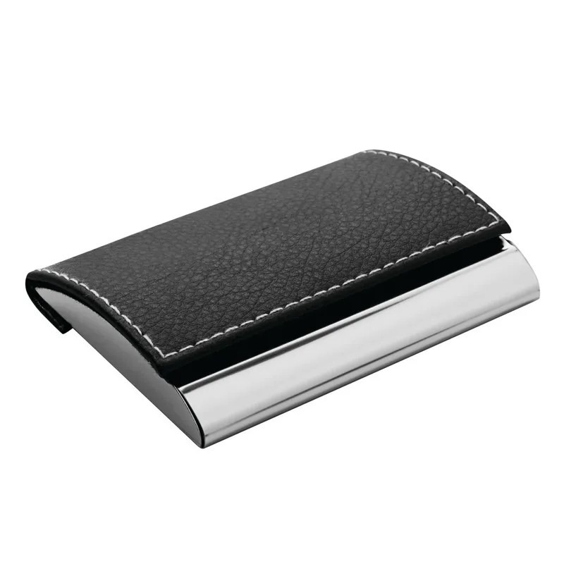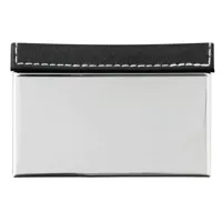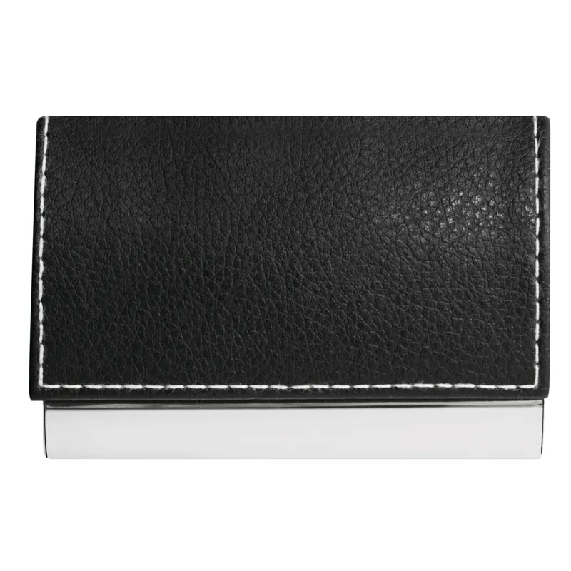 PIET névjegykártyatartó: belsejében bársony béléssel, külső csiszolt alap fedelén bőrhatású bevonattal fehér díszvarrással, biztonságos mágneses csattal