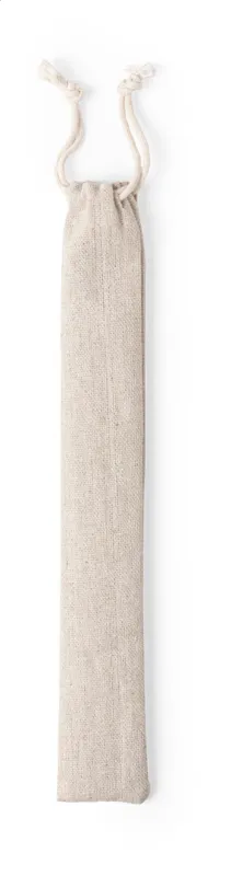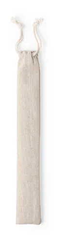 Természetes bambuszból készült 2 darabos szívószál készlet tisztító kefével, pamut tasakban. A szívószálak átmérője és felülete eltérhetnek egymástól.