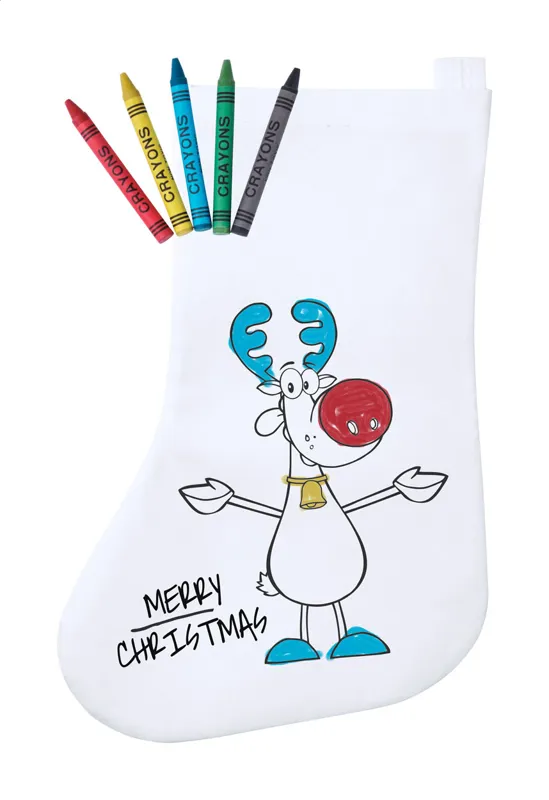 Non-woven anyagból készült, színezhető karácsonyi zokni, 5 db zsírkrétával. Anyaga: 80 g/m².