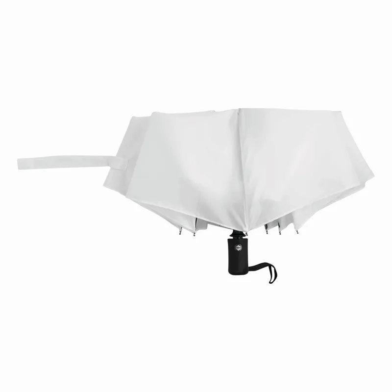 PLOPP automatikusan nyíló/záródó szélálló összecsukható esernyő színben hozzáillő tokban, 3 szelvényes fémvázzal, fém/üveggyapot bordázattal és fém zárókupakokkal, gumiborítású markolat csuklópánttal, poliészter ernyő, tépőzárral