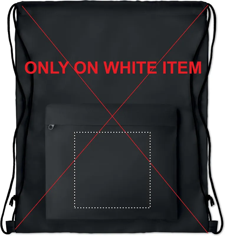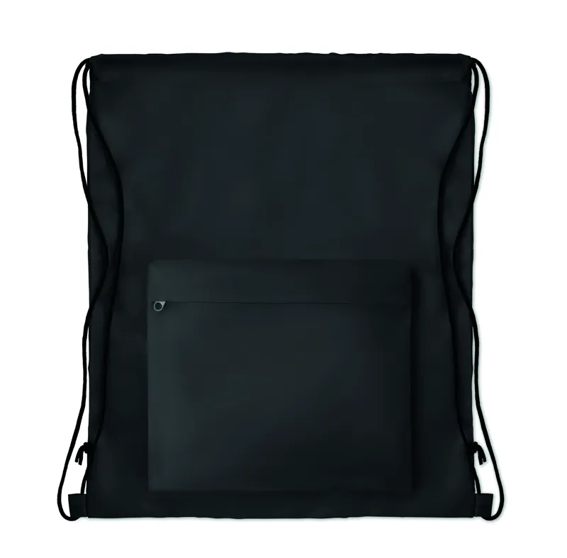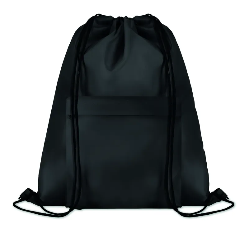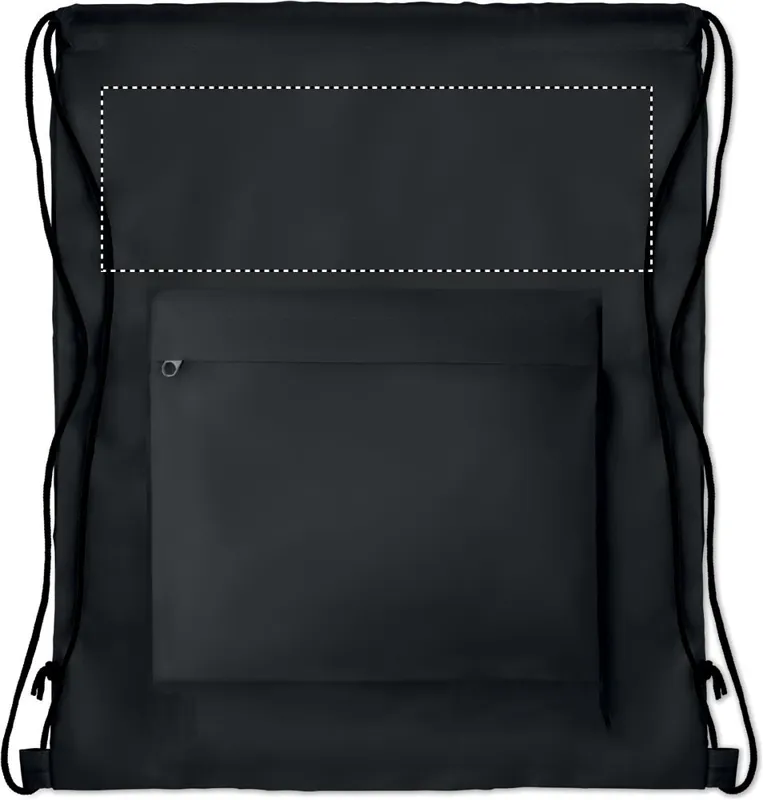 Nagy 210D poliészter tornazsák cipzározható elülső zsebbel. A szublimációs nyomtatás csak a fehér színű terméken érhető el.