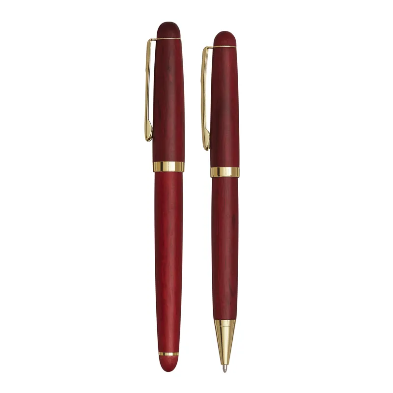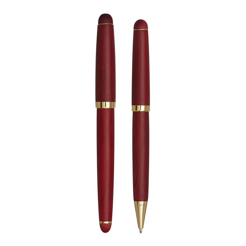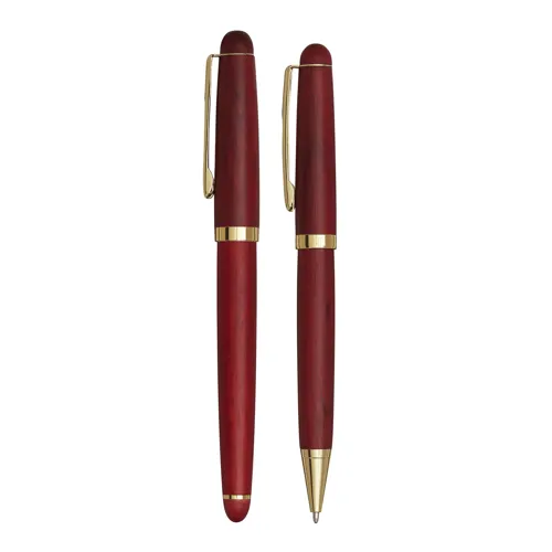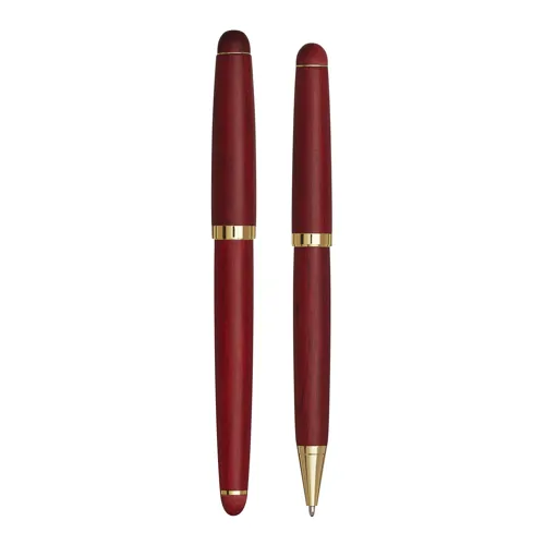 POET elegáns toll szett, golyóstoll és egy töltőtoll rózsafából, arany fényű díszítéssel, fadobozban
