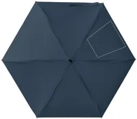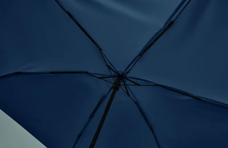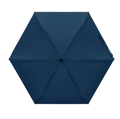 19 colos, 5 szakaszos összecsukható, kézzel nyitható esernyő 190T pongee anyagból, színazonos tokban. Fém és üvegszálas szélálló váz, fekete gumírozott markolat, csuklópánt. Összecsukott méret: 17 cm.