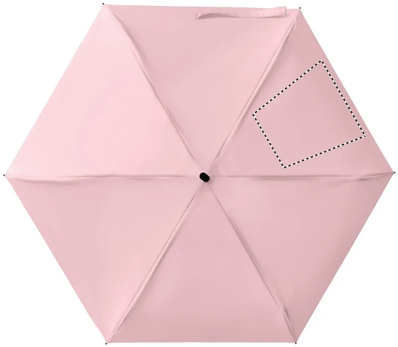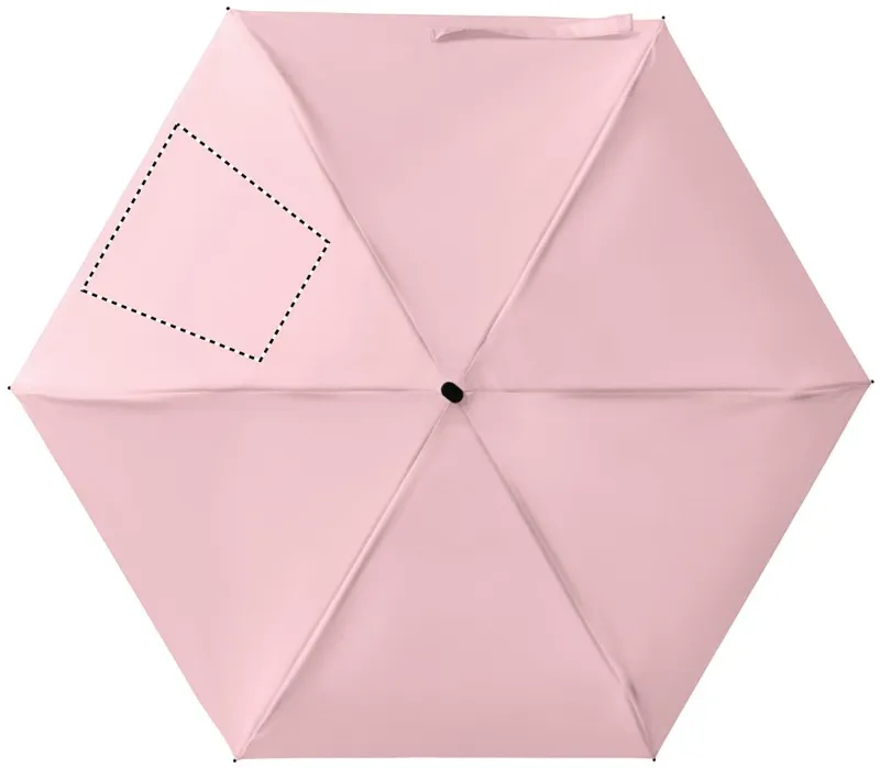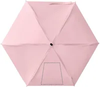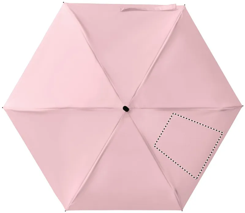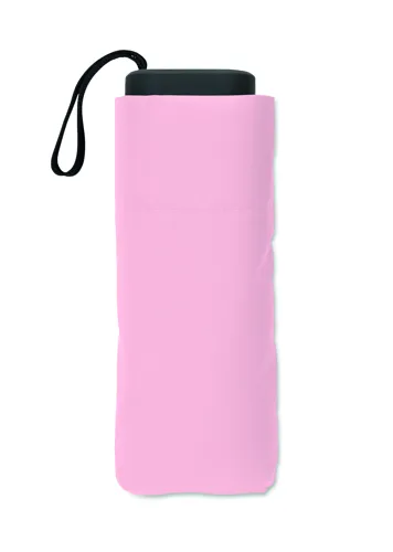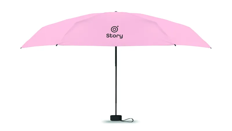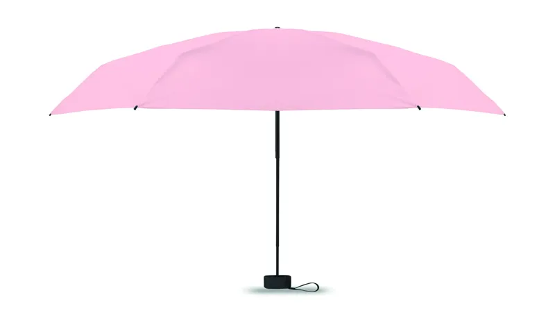 19 colos, 5 szakaszos összecsukható, kézzel nyitható esernyő 190T pongee anyagból, színazonos tokban. Fém és üvegszálas szélálló váz, fekete gumírozott markolat, csuklópánt. Összecsukott méret: 17 cm.