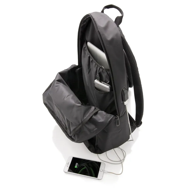 Maradjon mindig elérhető ezzel a 600D poliészter, 15” laptop hátizsákkal, ami egy egyedi USB kimenettel rendelkezik. Csatlakoztasson bármilyen típusú külső akkumulátort az USB bemenetbe és töltse fel készülékét akár útközben az USB kimenet segítségével!