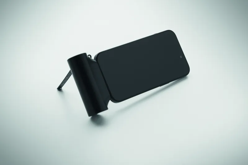 5000 mAh kapacitású powerbank ABS házban, telefonállvány funkcióval. C-típusú bemenet/kimenet és 20W PD (Power Delivery) gyorstöltés. Kompakt kialakítás, ideális utazáshoz.