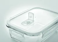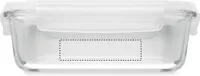 Boroszilikát üveg uzsonnásdoboz légmentesen záró PP tetővel. Mikrohullámú sütőben használható. Űrtartalom 900 ml.