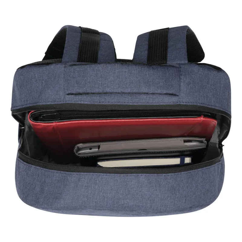 PRAGUE hátizsák: cipzáras elülső zseb, cipzáras főzseb és párnázott belső zseb laptop vagy tablet számára, 4 zsebes rendszerező, 1 becsúsztatható oldalzseb, párnázott fül, párnázott vállpántok és hátrész
