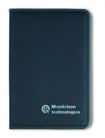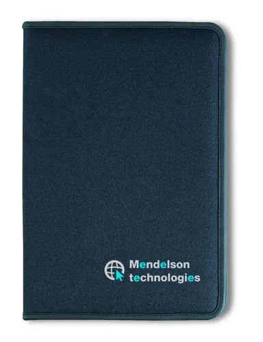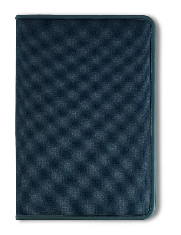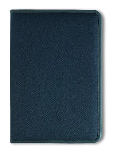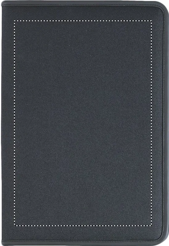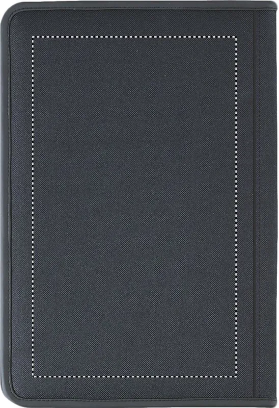 A4 cipzáras mappa 600D poliészterből, 210T béléssel. 20 oldalas vonalas A4 jegyzettömb újrahasznosított papírból. 4 külön rekesszel és kártyatartóval.