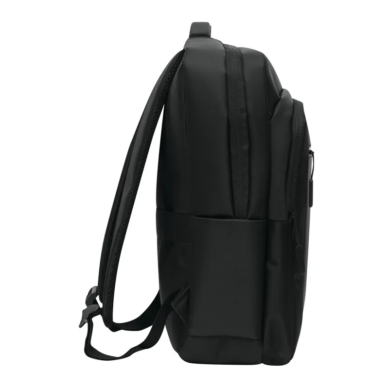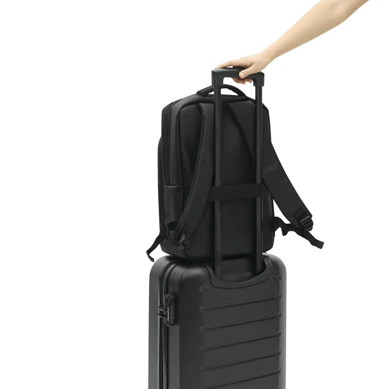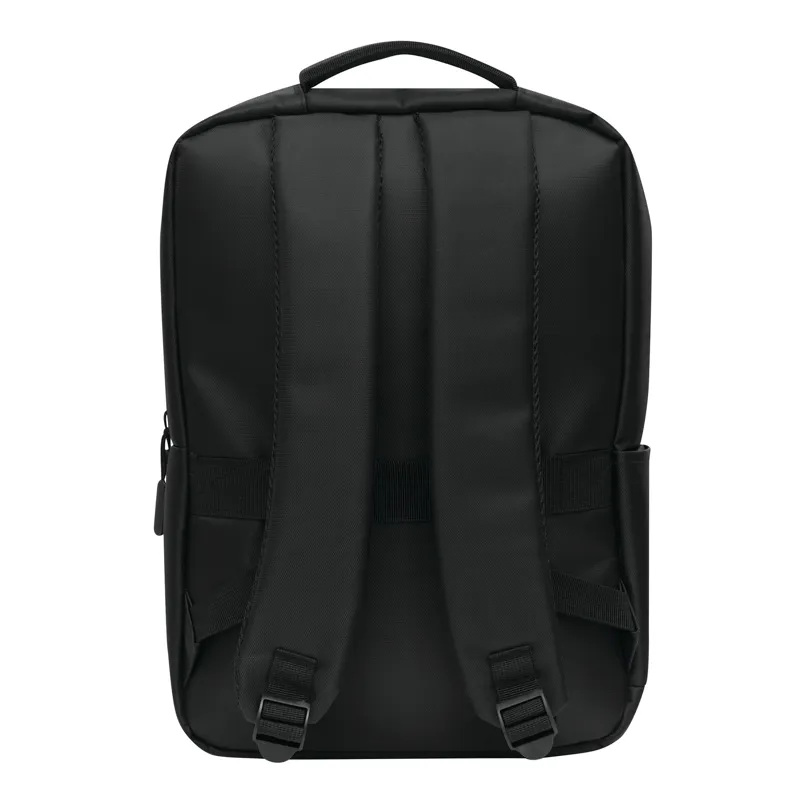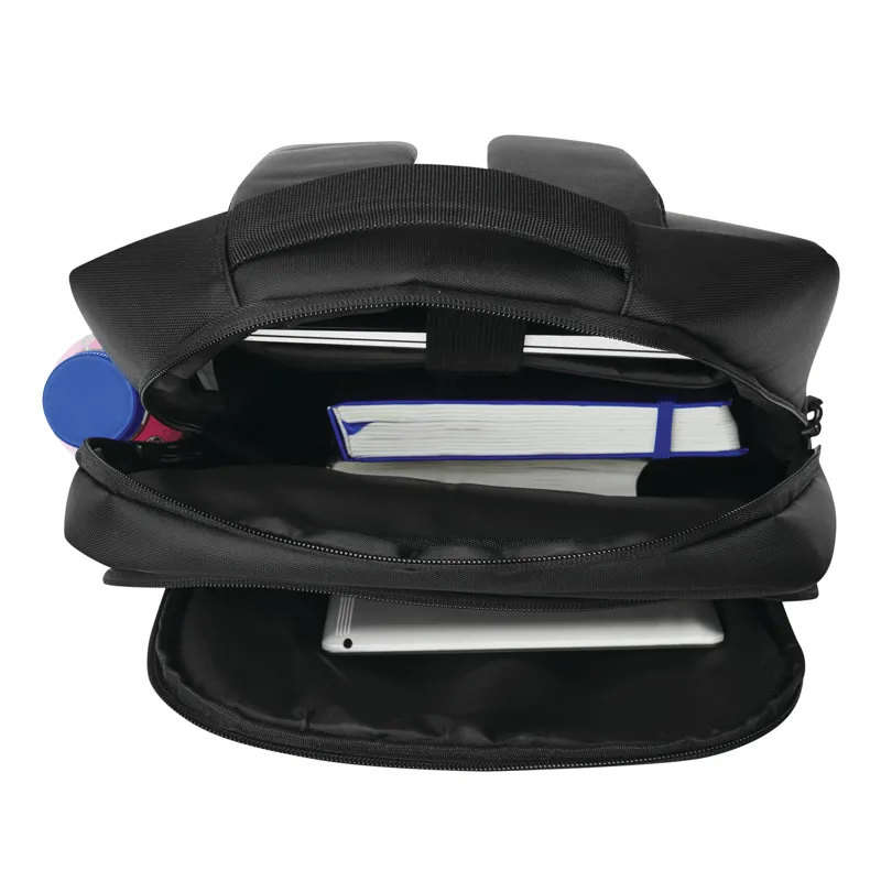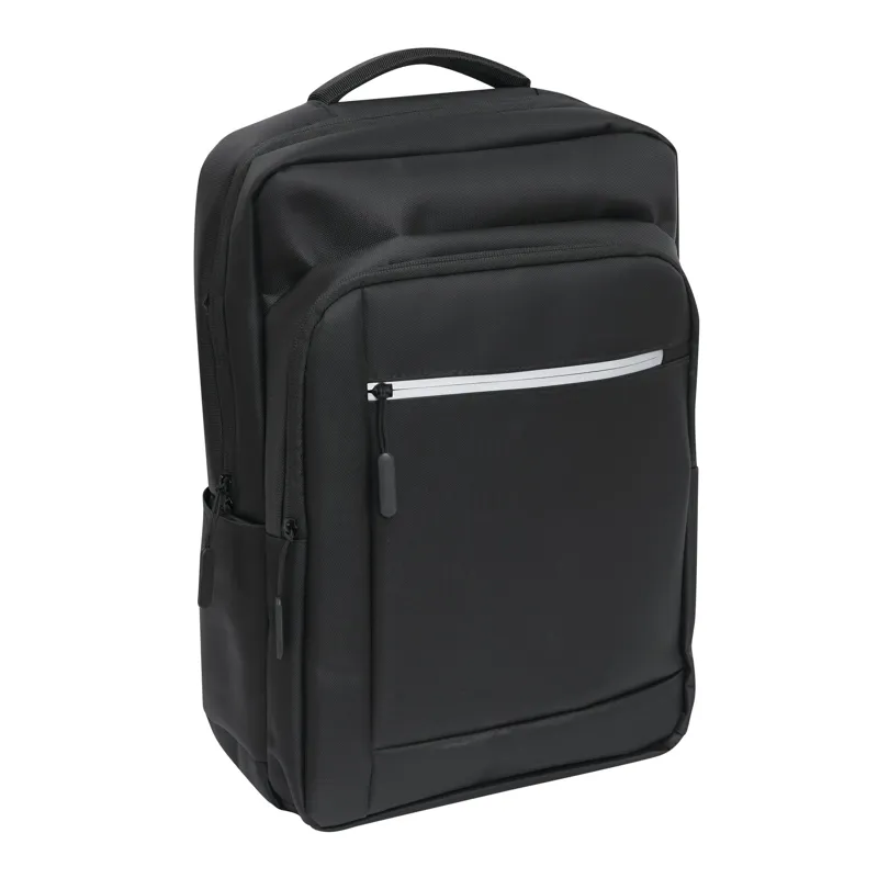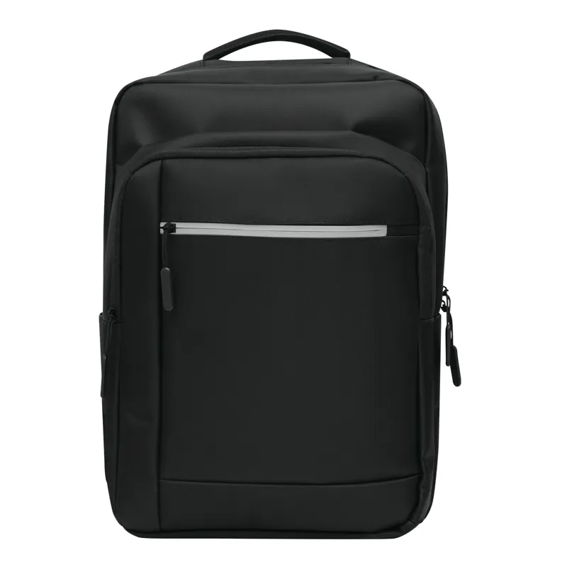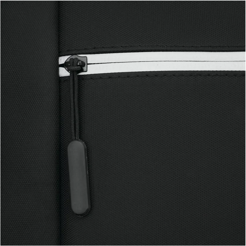 PRINCETON hátizsák: 1 cipzáras első rekesz rendszerezővel (2 becsúsztatható zseb és 2 tolltartó), 1 elülső zseb fényvisszaverő csíkkal, 1 becsúsztatható zseb az oldalán, 1 cipzáras fő rekesz béléssel belső rekesz laptop vagy tablet számára, párnázott fül, ergonomikusan kialakított párnázott vállpántok és párnázott hátrész, gurulós bőröndre rögzítő pánttal