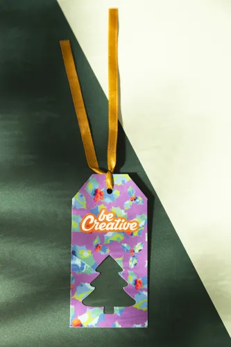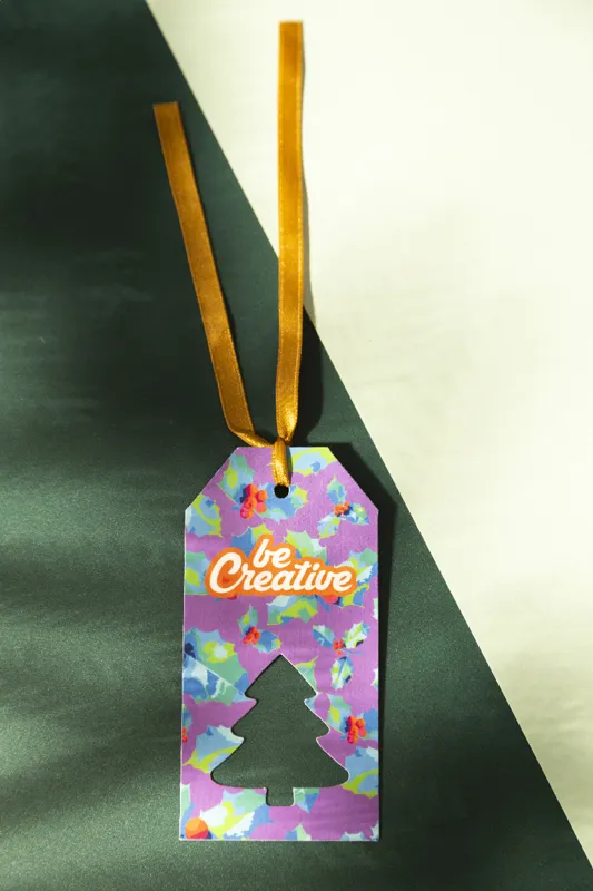 Egyedi gyártású, full-colour nyomtatott papír karácsonyi ajándékcímke kivágott karácsonyi motívummal és arany szalaggal. Az ár tartalmazza az egyik oldal digitális nyomtatását. Minimális rendelési mennyiség: 100 db.