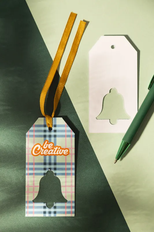 Egyedi gyártású, full-colour nyomtatott papír karácsonyi ajándékcímke kivágott karácsonyi motívummal és arany szalaggal. Az ár tartalmazza az egyik oldal digitális nyomtatását. Minimális rendelési mennyiség: 100 db.