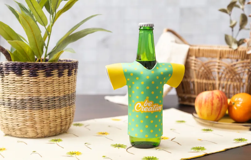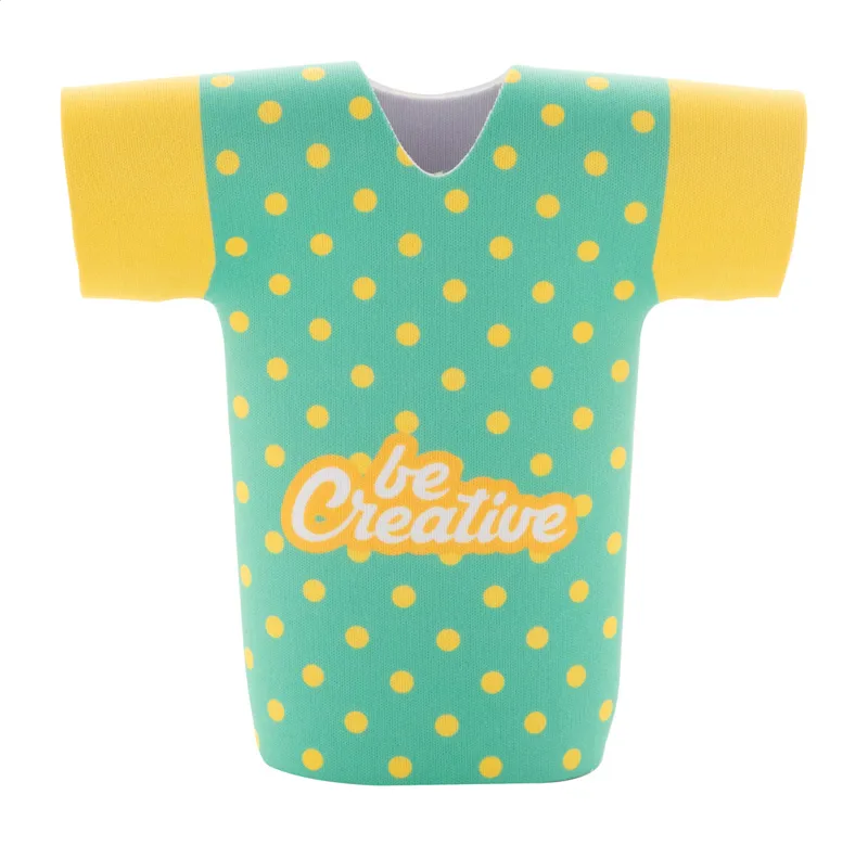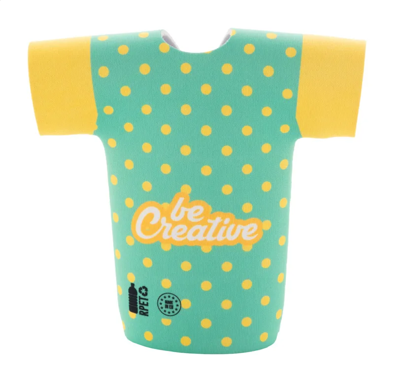 Egyedi gyártású, RPET neoprén sörösüveg hűtő póló formában. Teljes felületén szublimációs nyomtatott grafikával. Minimális rendelési mennyiség: 50 db.