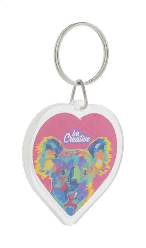 Szív alakú akril kulcstartó egyedi, full-colour papír betéttel és fém karikával. Az ár tartalmazza mindkét oldal digitális nyomtatását. Minimális rendelési mennyiség: 100 db.