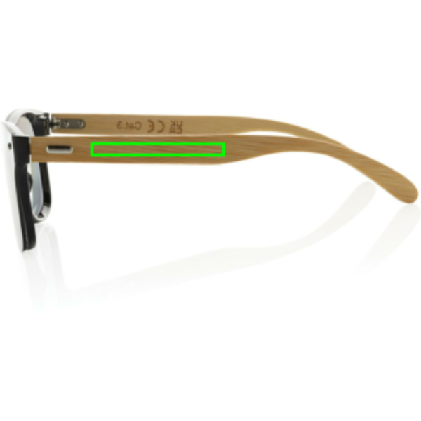 RCS újrahasznosított PC kerettel és FSC bambuszból készült napszemüveg. Tükörlencsékkel a divatos megjelenésért. Teljes újrahasznosított anyagtartalom: 23% a termék összsúlya alapján. Az RCS-tanúsítvány biztosítja az újrahasznosított anyagok ellátási láncát. A lencsék megfelelnek az EN ISO 12312-1, UV 400 és CAT 3 szabványnak. FSC® kraft dobozban.