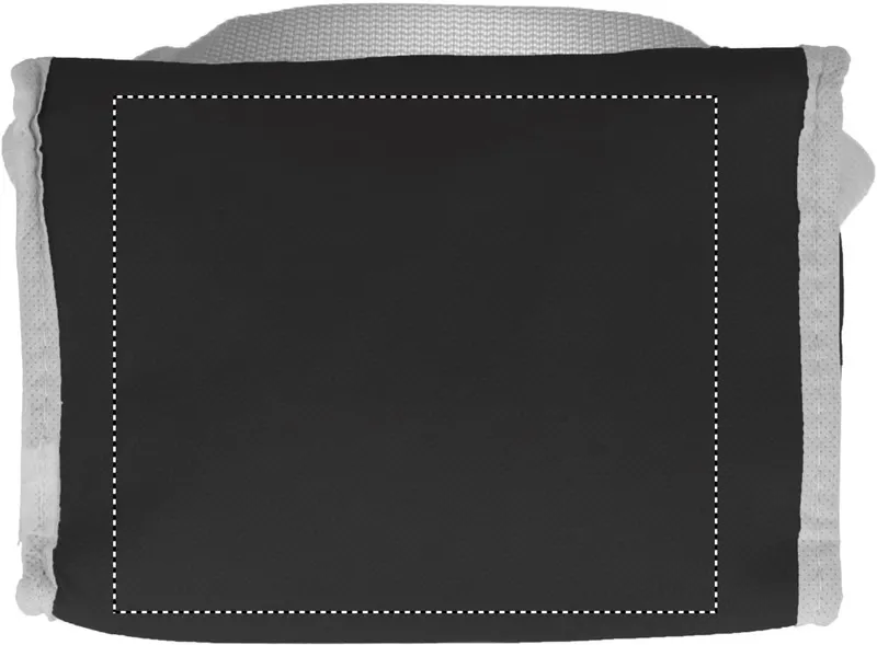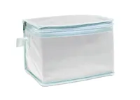 80 g vastag nemszőtt anyagból készült, belül alumínium fóliával, kívül fehér szegéllyel ellátott hűtőtáska 6 db üdítős doboz tárolására. Szigetelő anyag: alumínium fóliával laminált hab. Űrtartalom 3 l.