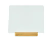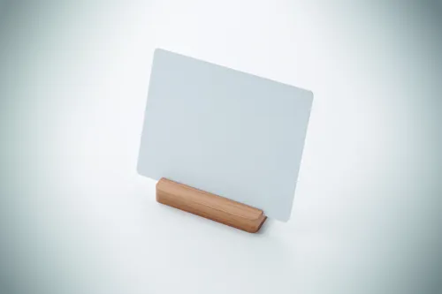 Szublimációs alumínium reklámtábla természetes bambusz talppal. Ideális egyéni márkamegjelenítés vagy dekoráció céljára.