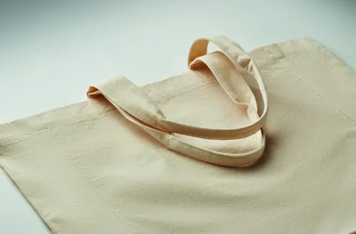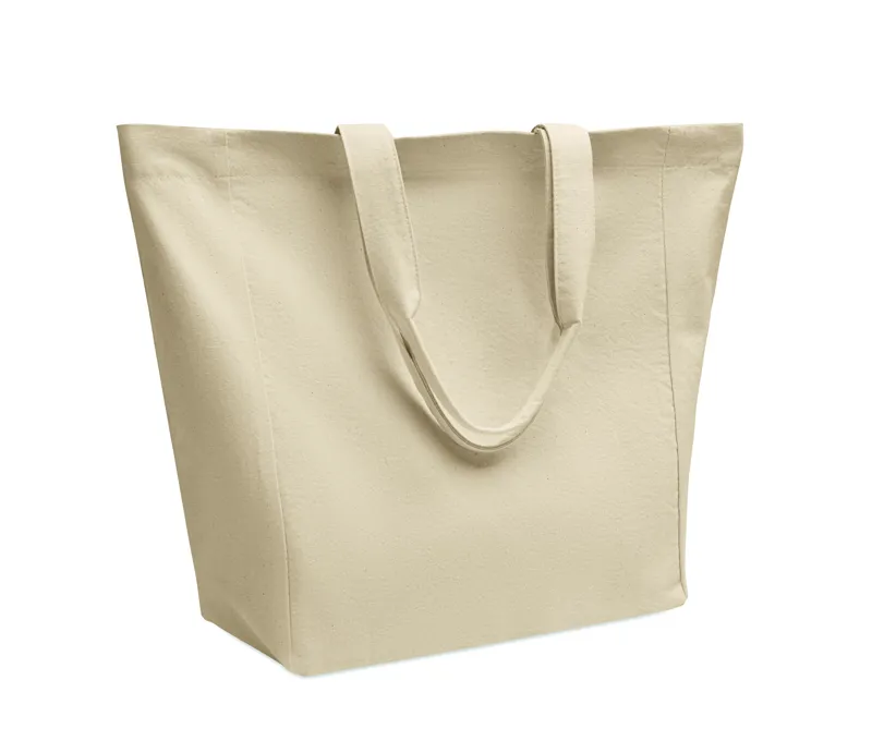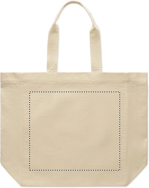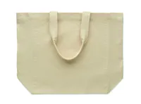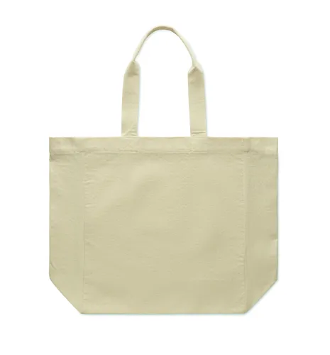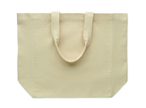 Pamut bevásárlótáska rövid fülekkel és oldalsó toldással. 220 g/m².