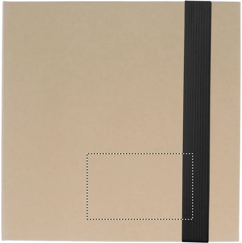 Jegyzetfüzet újrahasznosított kartonborítóval. 100 sima lapos jegyzettömb. 3 féle öntapadós jegyzetelő. Nagy és közepes méretű sárga öntapadós jegyzettömbök és 5 különböző színű oldaljelölő. Hozzáillő nyomógombos golyóstoll papír tolltesttel. Elasztikus zárópánttal. FSC®-certified | FSC MIX, P7.1, FSC-C213206