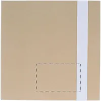 Jegyzetfüzet újrahasznosított kartonborítóval. 100 sima lapos jegyzettömb. 3 féle öntapadós jegyzetelő. Nagy és közepes méretű sárga öntapadós jegyzettömbök és 5 különböző színű oldaljelölő. Hozzáillő nyomógombos golyóstoll papír tolltesttel. Elasztikus zárópánttal. FSC®-certified | FSC MIX, P7.1, FSC-C213206