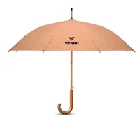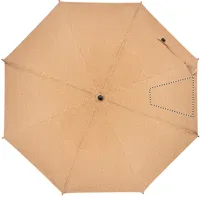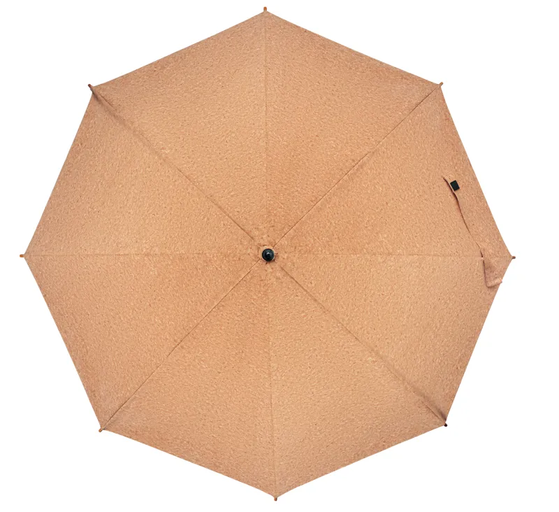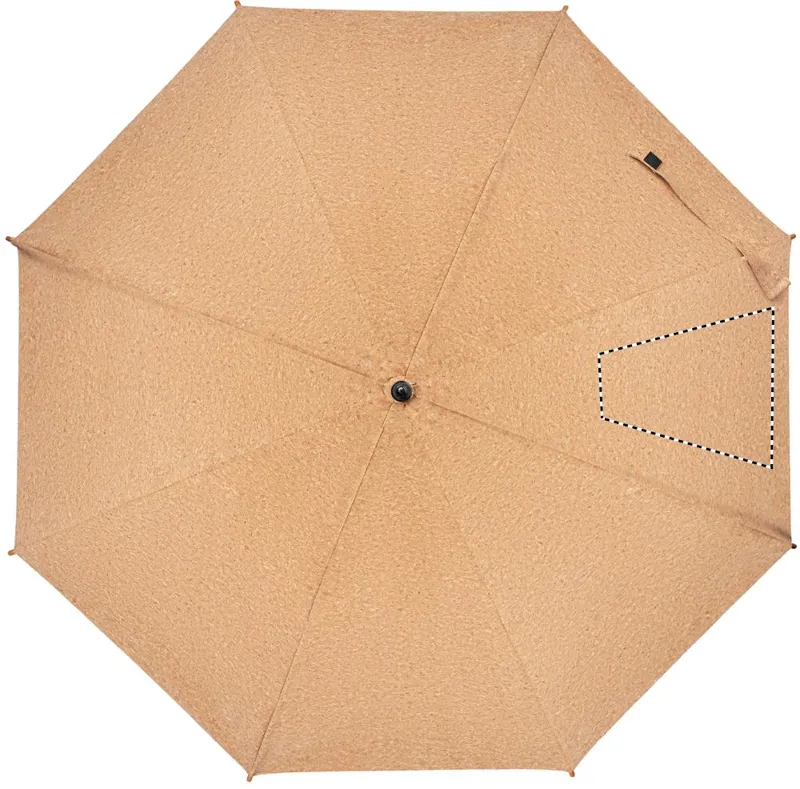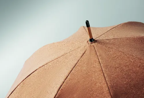 25 colos automatikus nyitású parafa esernyő bambusz rúddal és fa nyéllel, üvegszálas bordákkal. Fekete műanyag cikkelyzáró elemekkel és csúccsal. Kézi záródással. A parafa 100%-ban természetes anyag. Szerkezeti jellege és felületi porozitása miatt az egyes tárgyak végső emblémázási eredménye eltéréseket mutathat.