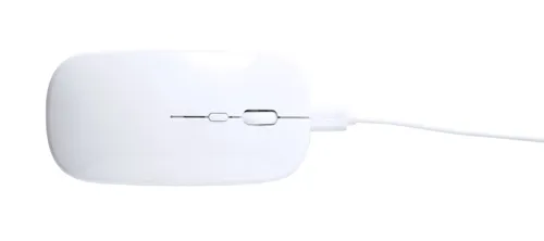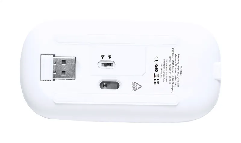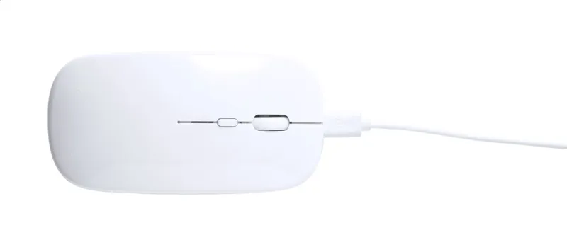 Újrahasznosított ABS műanyag optikai egér beépített újratölthető akkumulátorral. USB töltőkábellel szállítjuk.