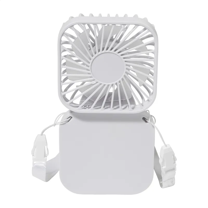 Újrahasznosított ABS elektromos kézi ventilátor beépített USB újratölthető akkumulátorral (500 mAh). Állítható szöggel és 3 sebesség fokozattal. USB töltőkábellel.