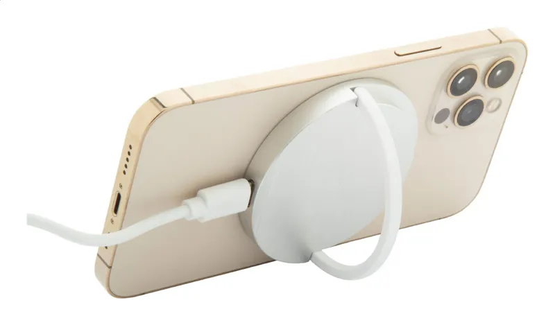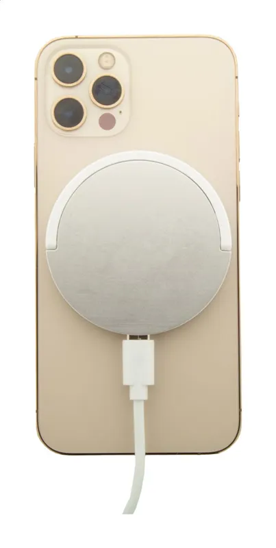 Mágneses vezeték nélküli gyorstöltő (15W) mobiltartó gyűrűvel újrahasznosított alumíniumból és újrahasznosított ABS műanyag borítással. Kompatibilis az iPhone® 12 vagy újabb készülékekkel. USB-C töltőkábellel szállítjuk.