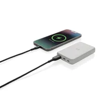 5000 mAh zsebméretű powerbank 5W-os vezeték nélküli töltővel RCS újrahasznosított ABS műanyag házzal. Az RCS-tanúsítvány biztosítja az újrahasznosított anyagok ellátási láncát. Teljes újrahasznosított anyag tartalom: 26% a termék összsúlya alapján. Teljesen feltöltött állapotban a powerbankkel akár kétszer újratölthető a mobiltelefon. A powerbank hosszú élettartamú, A fokozatú, 5000 mAh lítium-polimer akkumulátort tartalmaz. Töltöttségjelzővel. Micro USB bemenet 5V/2A; C típusú bemenet 5V/2,4A; USB kimenet 5V/2,4A, C típusú kimenet: 5V/2A Termék és tartozékai PVC-mentesek. RCS újrahasznosított TPE töltőkábellel. FSC® mix csomagolásban.