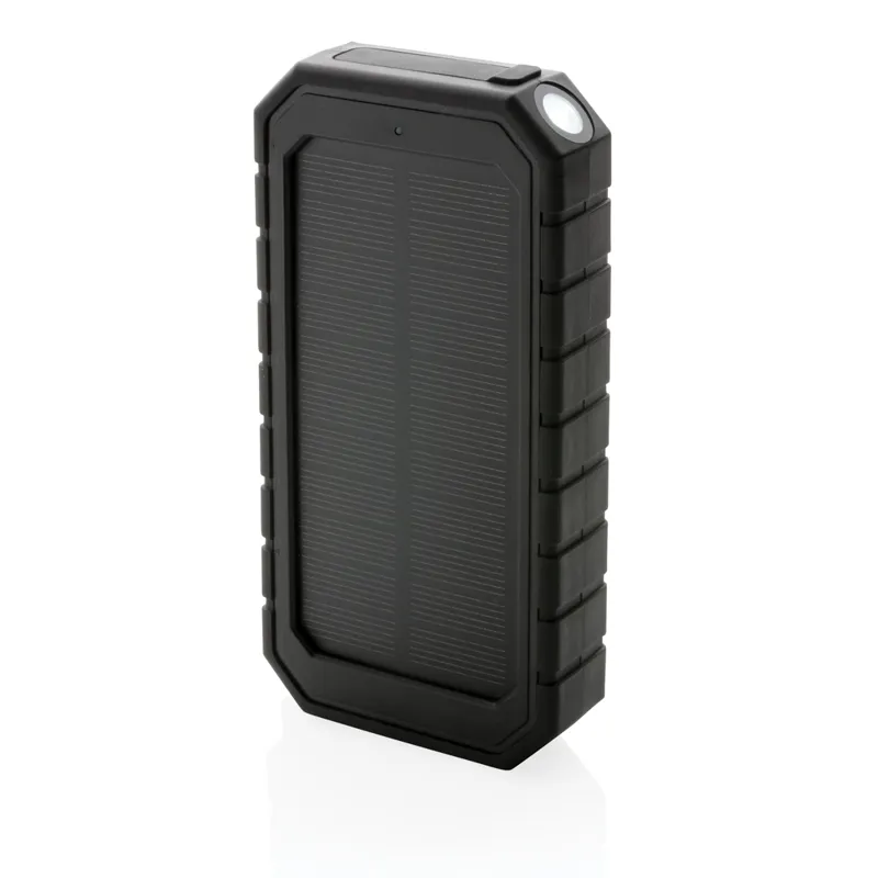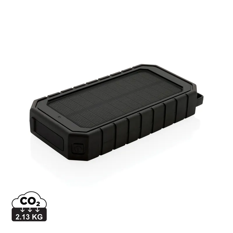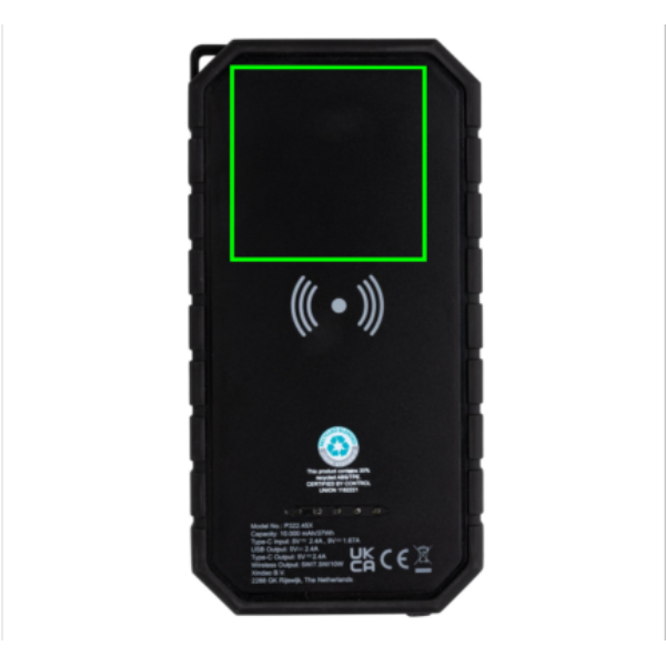 Gyors, 10 000 mAh, 10W-os vezeték nélküli töltős napelemes powerbank RCS (Recycled Claim Standard) újrahasznosított ABS-ből és TPE-ből. Teljes újrahasznosított anyag tartalom: 30% a termék összsúlya alapján. Az RCS-tanúsítvány biztosítja az újrahasznosított anyagok ellátási láncát. A powerbank a kábelen (C típusú és USB) és a 10W-os vezeték nélküli gyorstöltőn keresztüli töltést egyaránt támogatja. Az összes QI-kompatibilis eszközzel kompatibilis, mint az Android legújabb generációi, iPhone 8 és újabb verziók. Napelemmel, zseblámpával és karabínerrel rendelkezik, amellyel bármilyen táskához rögzíthető. IPX5 vízállóságú. Töltöttségjelzővel. GRS újrahasznosított TPE-ből készült C típusú töltőkábellel. FSC® mix kraftdobozban. USB kimenet: 5/2,4A, C típusú kimenet: 5V/2,4A.A termék és összetevői 100% PVC-mentesek.