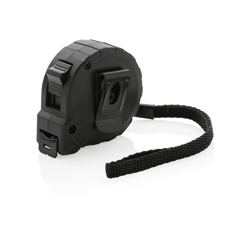 3 méteres mérőszalag RCS (Recycled Claim Standard) újrahasznosított ABS-ből. Teljes újrahasznosított anyag tartalom: 17% a termék összsúlya alapján. Az RCS-tanúsítvány biztosítja az újrahasznosított anyagok ellátási láncát. Elegáns TRP gumimarkolattal az egyenletes fogásért. Kiold/zár gombbal és extra tartó gombbal az oldalán. 16 mm-es egyoldalas sárga mérőszalaggal, fekete szénacél kampóval. Poliészter csuklópánttal. FSC® mix kraft csomagolásban.