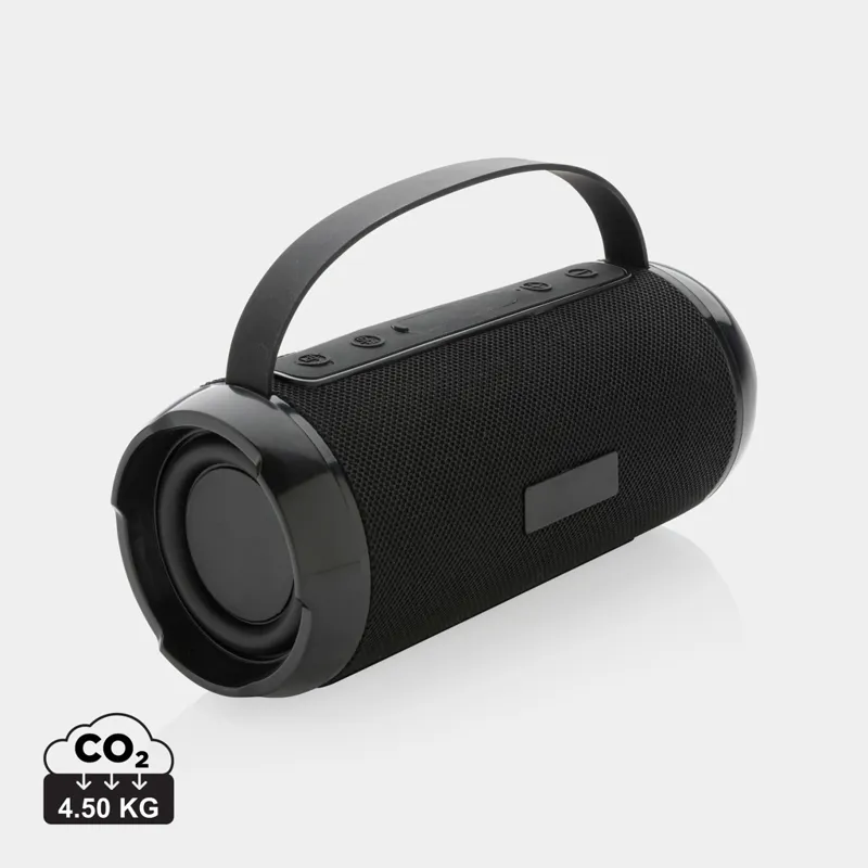 RCS (Recycled Claim Standard) újrahasznosított ABS-ből és PET-ből készült erőteljes 6W-os vezeték nélküli hangszóró. Teljes újrahasznosított anyag tartalom: 41% a termék összsúlya alapján. Az RCS-tanúsítvány biztosítja az újrahasznosított anyagok ellátási láncát. A hangszóró IPX 4 vízállóságú így szabadtéri tevékenységekhez, például piknikhez, grillezéshez, strandoláshoz vagy akár medencés partihoz tökéletes. A hangszóró 1200 mAh-s akkumulátorral rendelkezik, amely akár 6 órányi lejátszási időt biztosít. 5.0 vezeték nélküli kapcsolattal rendelkezik a zökkenőmentes csatlakozás és tiszta hangzás érdekében. Működési távolság akár 10 méterig. Mikrofonnal és hívásfogadó funkcióval. FSC mix kraftdobozban. RCS újrahasznosított TPE töltőkábellel.